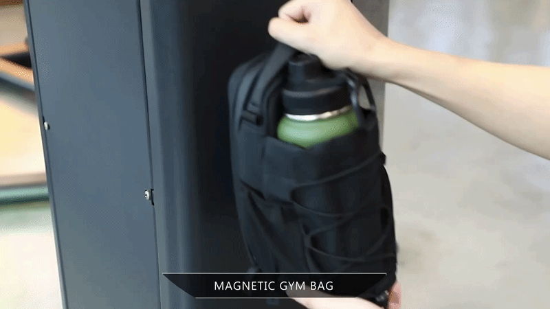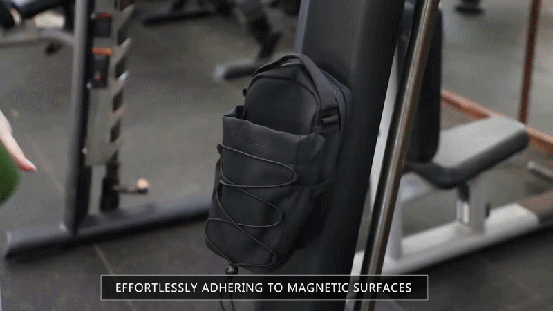 The bag is equipped with high-strength magnets designed to firmly attach to metal gym equipment. It stays securely in place during workouts, holding your bottle, phone and essentials without slipping.